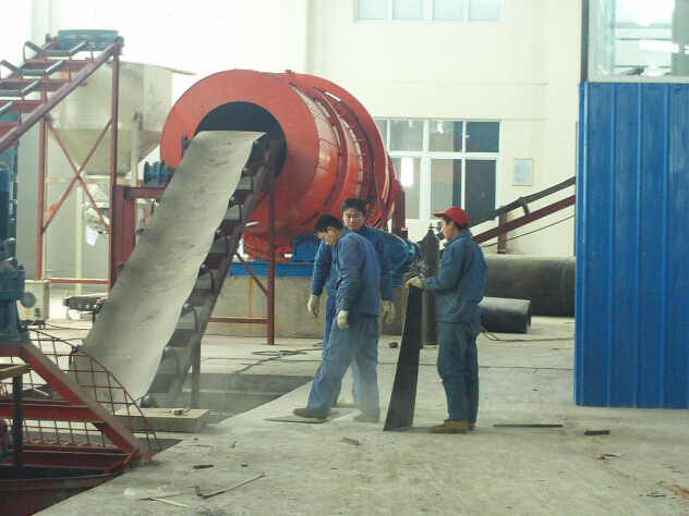 3.控制攪拌時間和攪拌過程中的加水量。一般情況下,攪拌5分鐘即可使物料均勻混合,同時物料也能吸收一定量的水分,有利于造粒。污泥有機-無機復混肥的特點之一是在混合過程中加水,這與其他復混肥造粒工藝不同。首先,污泥吸水率慢,造粒機加水影響造粒速度。二是粉碎后污泥較輕,在混合輸送過程中容易產生較大的粉塵,不易在空氣中沉降,造成惡劣的工作環境。為此采取的方法是在混合過程中加入15%左右的水。實踐證明,該方法在提高生產效率的同時,改善了生產環境,使生產過程更加順利。